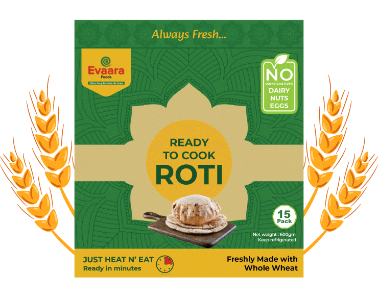 Evaara Foods’ ready-to-cook uncooked rotis made from high-quality whole wheat flour, delivering soft, fresh chapati you can prep in minutes for classic Indian curry, sabzi, and everyday meals.